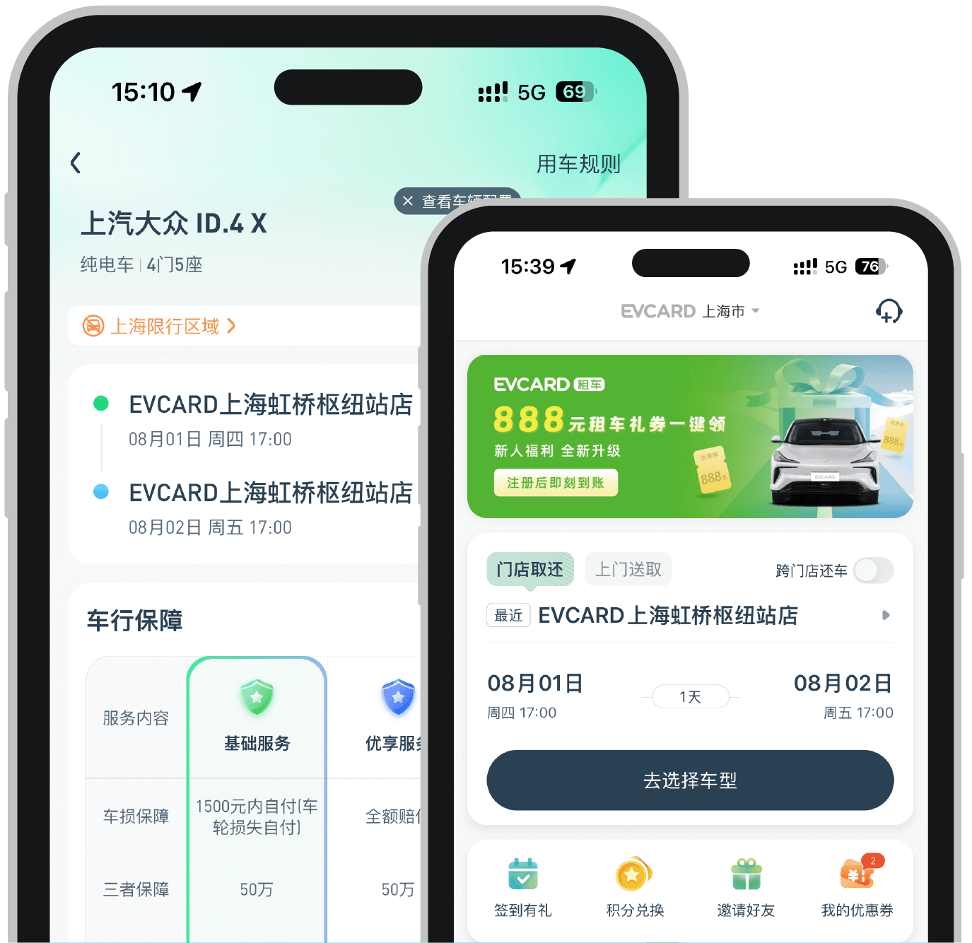APP:可在手機(jī)應(yīng)用市場(chǎng)搜索下載“EVCARD租車”APP進(jìn)行預(yù)定。